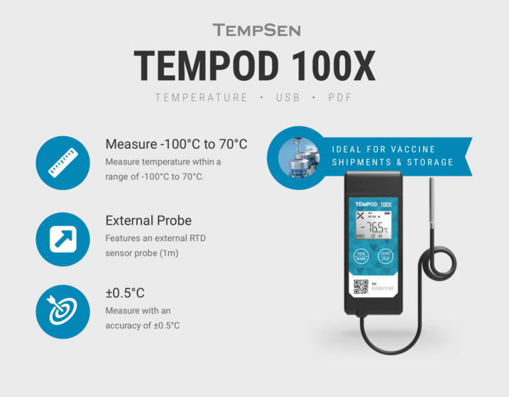 Monitoring dry ice shipments as they pass through the cold chain is incredibly important to not only certify the safety of the products, but also the end user. Vaccines, pharmaceuticals and food items must be kept at low temperatures when passing through the cold chain to ensure they are fit for use. For example, meat produce travelling through the cold chain could be exposed to dangerous bacteria if they became too hot. In the case of vaccines, these pose the risk of falling outside of their licensed storage guidelines. Whilst this can cause health and safety risks, it also contributes to huge amounts of product and cost wastage. The Tempod 100X dry ice data logger means that any products stored in ultra-low temperature environments are stored safely and securely.