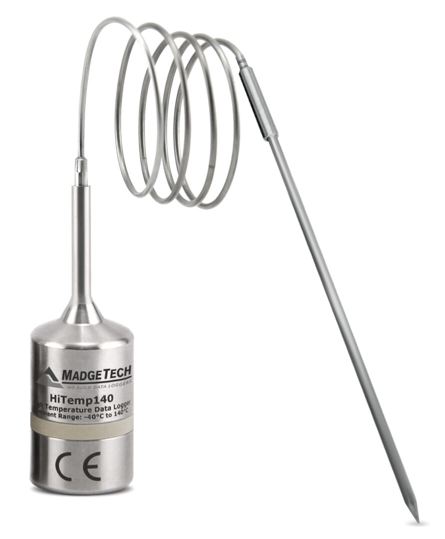 HiTemp140-PT-5 has a long 4.8" sensor for insertion into product and a 24" mineral insulated cable run. This cable and sensor will collect precise (+/-0.1°C) data in the harshest of environments. The semi-flexible probe is ideally suited to product and air temperature verification studies. A carefully configured semi flexible probe can be coiled, bent or angled in any direction and will stay in that position throughout the validation exercise.