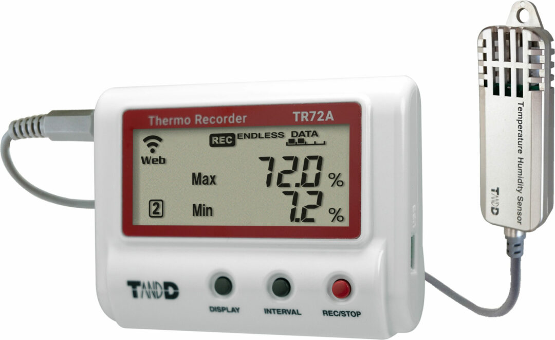 Mount your TR72A2-S data logger outside of an incubator or humidity/temperature critical environment and feed the probed cable into the desired monitoring location, repeat for additional monitoring locations across different floors of a building or even in different geographical locations with all data sent back to a central location via the TandD cloud utility called ‘Webstorage-service’