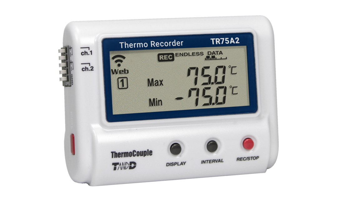 The TR75A2 by T&D data loggers allows users to access data via Cloud or PC using a Wi-Fi or USB connection.